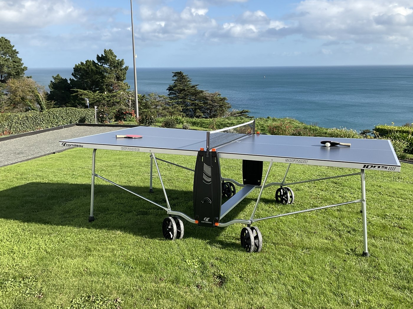 Jardin avec terrasse vue mer et boulodrome, table de jardin, bel ensoleillement jusque fin d’après midi.