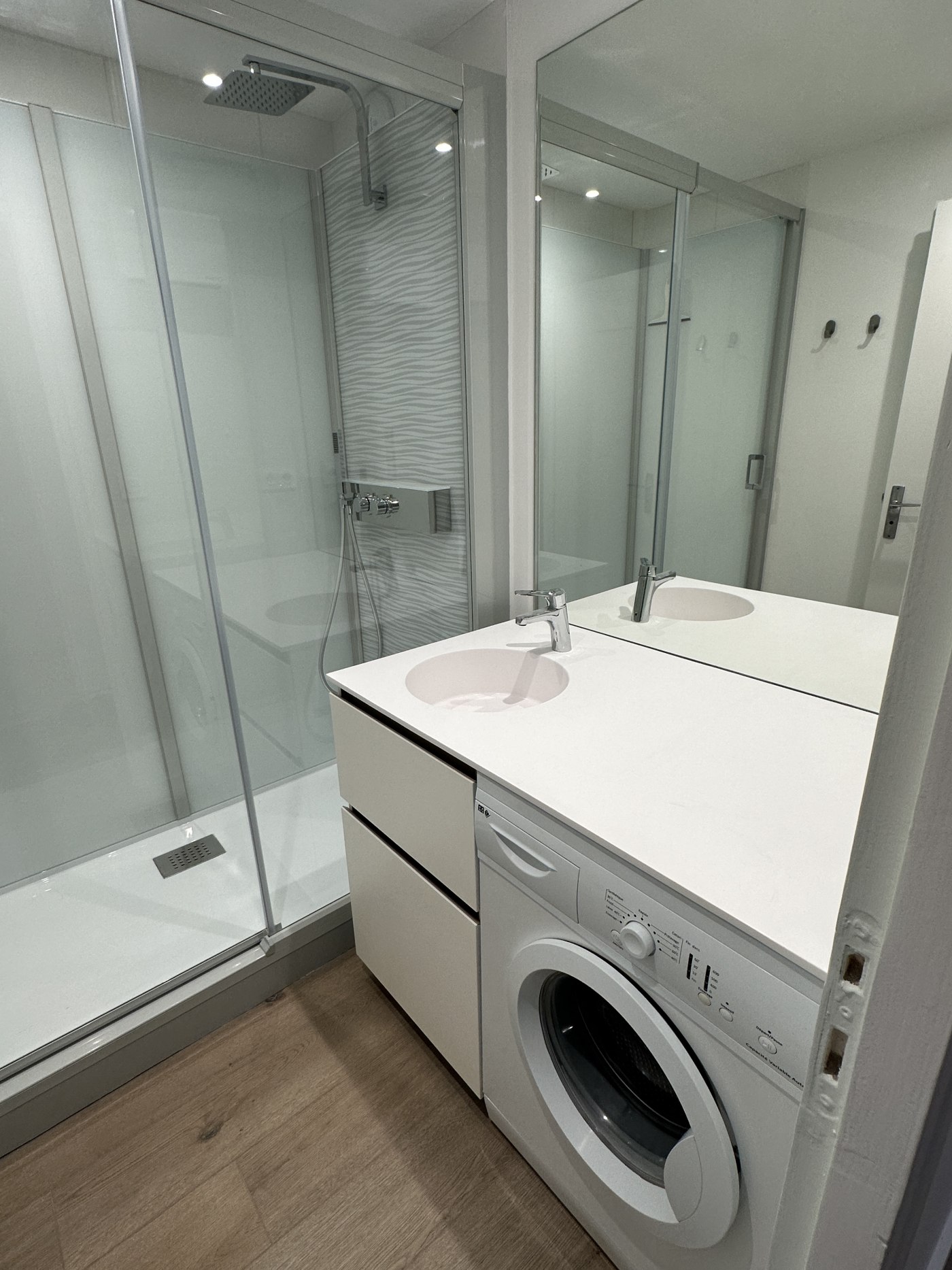 Salle de bain avec Lave-Linge et Cabine de Douche 160x80cm. WC séparé.