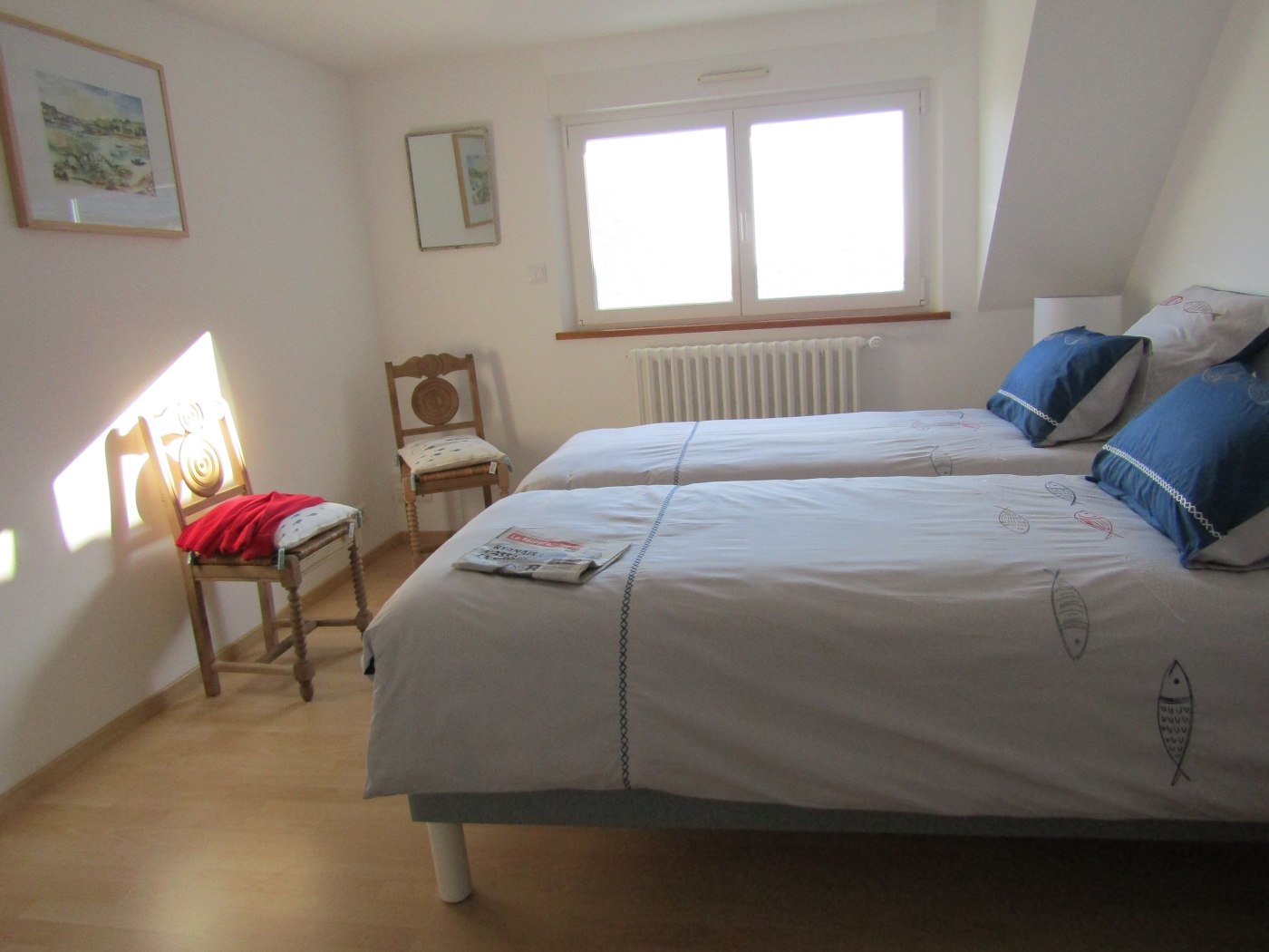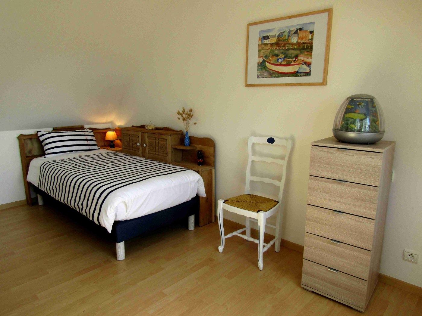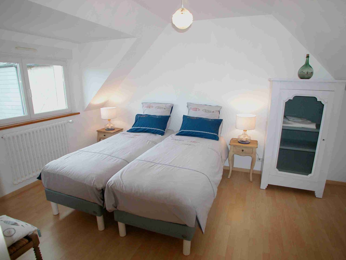 - A L'ETAGE: 2 chambres ( l'une avec deux lits jumeaux 80x200, l'autre un lit 90x200) et une salle d'eau avec toilettes.