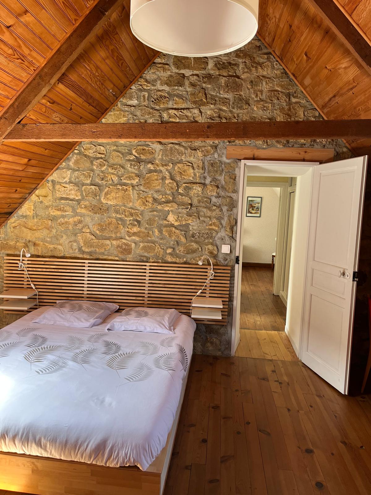 A l'étage : 3 chambres (un lit en 120 cm, deux lits de 140 et 160 cm).