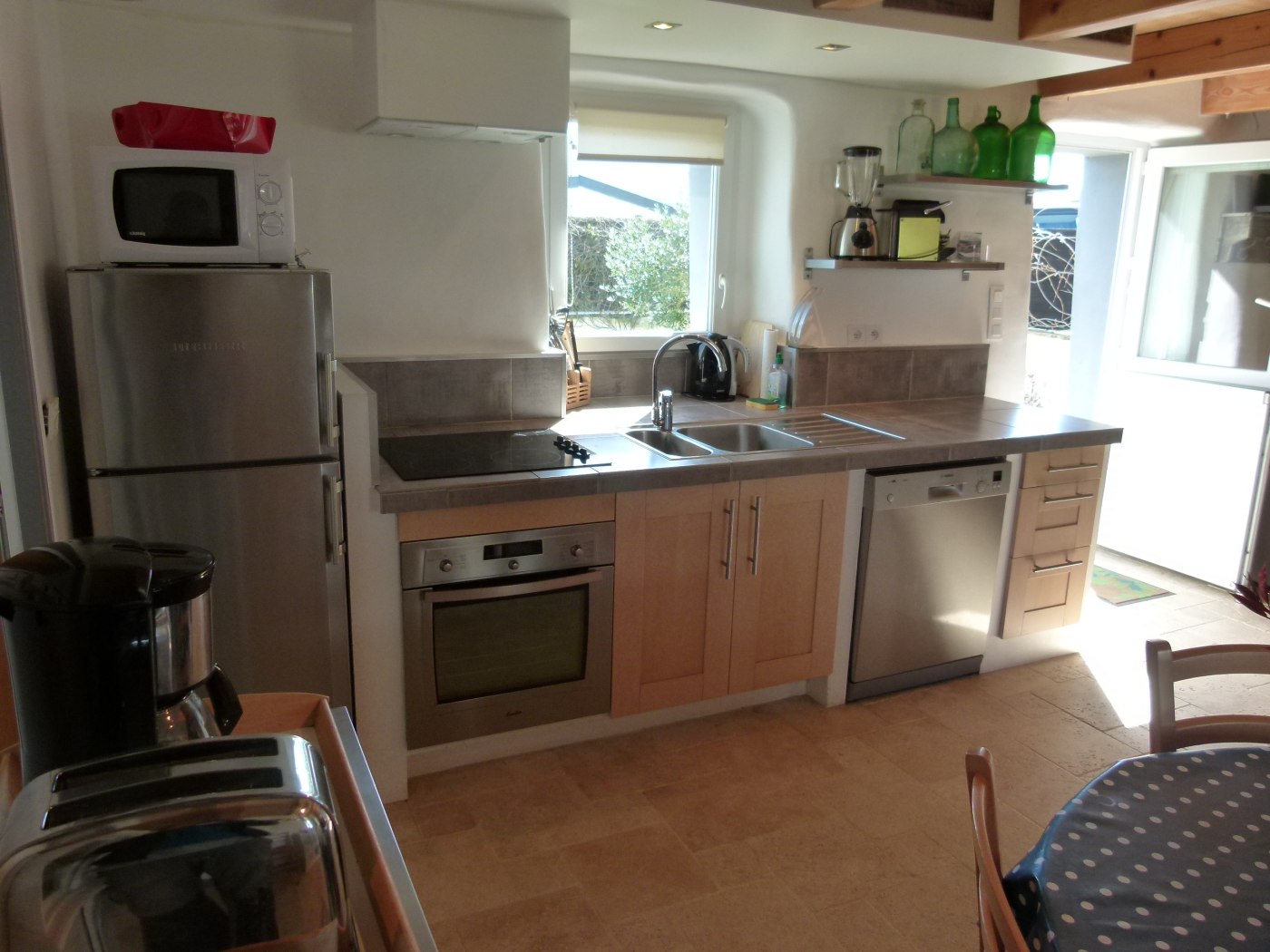 Maison de 5 couchages , une chambre avec un grand lit et une chambre avec un grand et un petit lit. Salle de bain / wc avec lave linge et sèche linge . Cuisine équipé . Wifi . jardin clos.