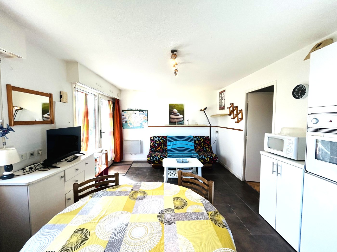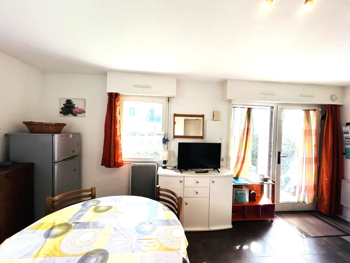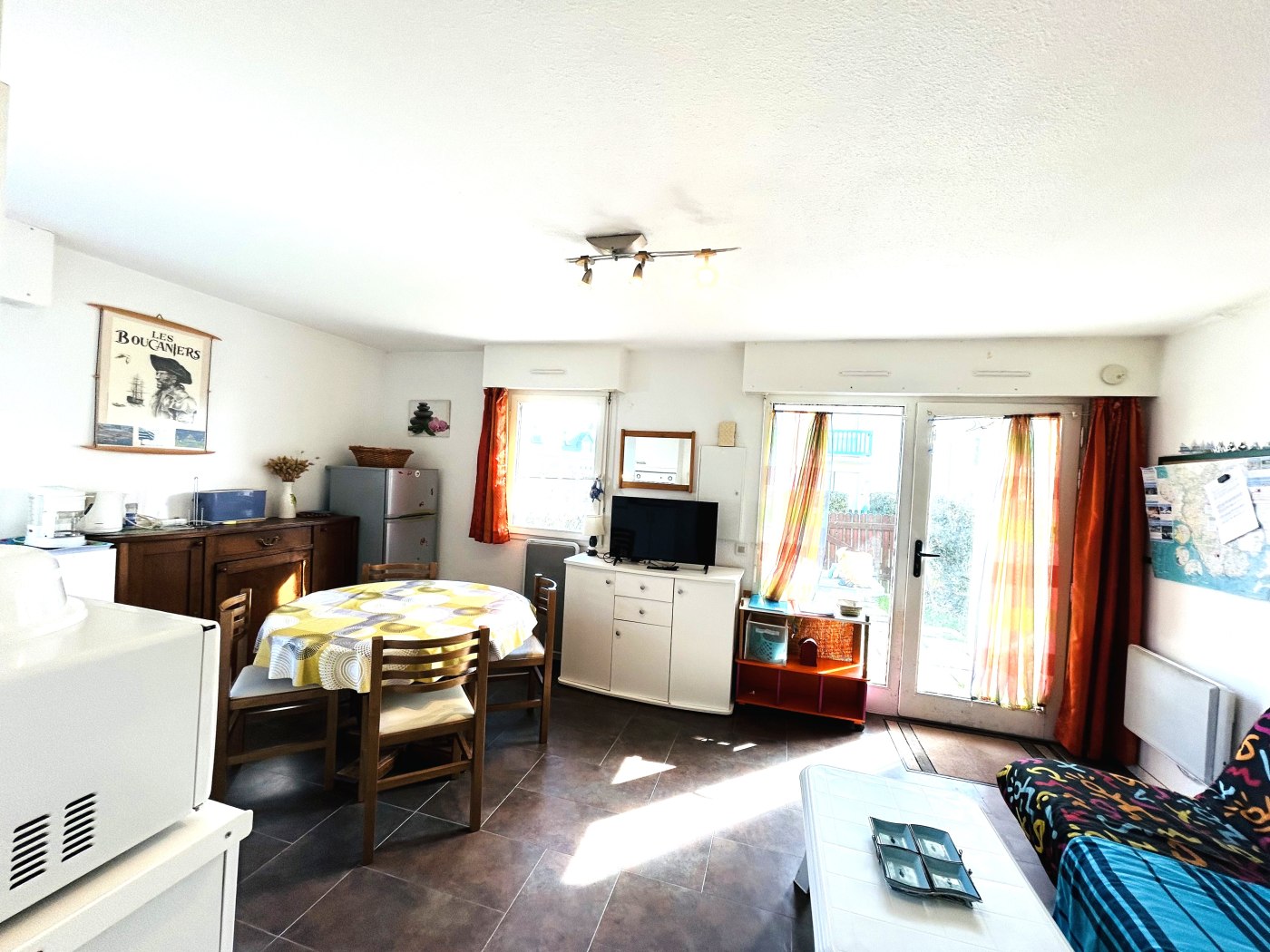 1 chambre avec 1 lit pour 2 personnes accessible aux personnes en fauteuil roulant, 1 séjour avec 1 clic-clac et kitchenette équipée., 1 salle d'eau ( douche ) / WC.
