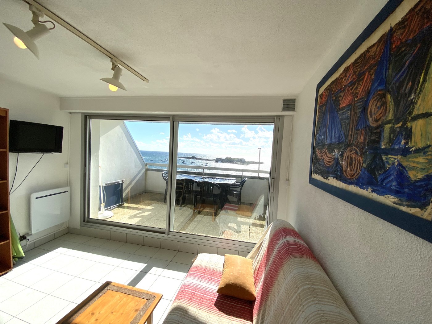 Situé au 2ème étage de la résidence "Les Loriots" à 30 m de la plage du Fort-Bloqué", cet appartement de 25m² avec une magnifique vue mer se compose :