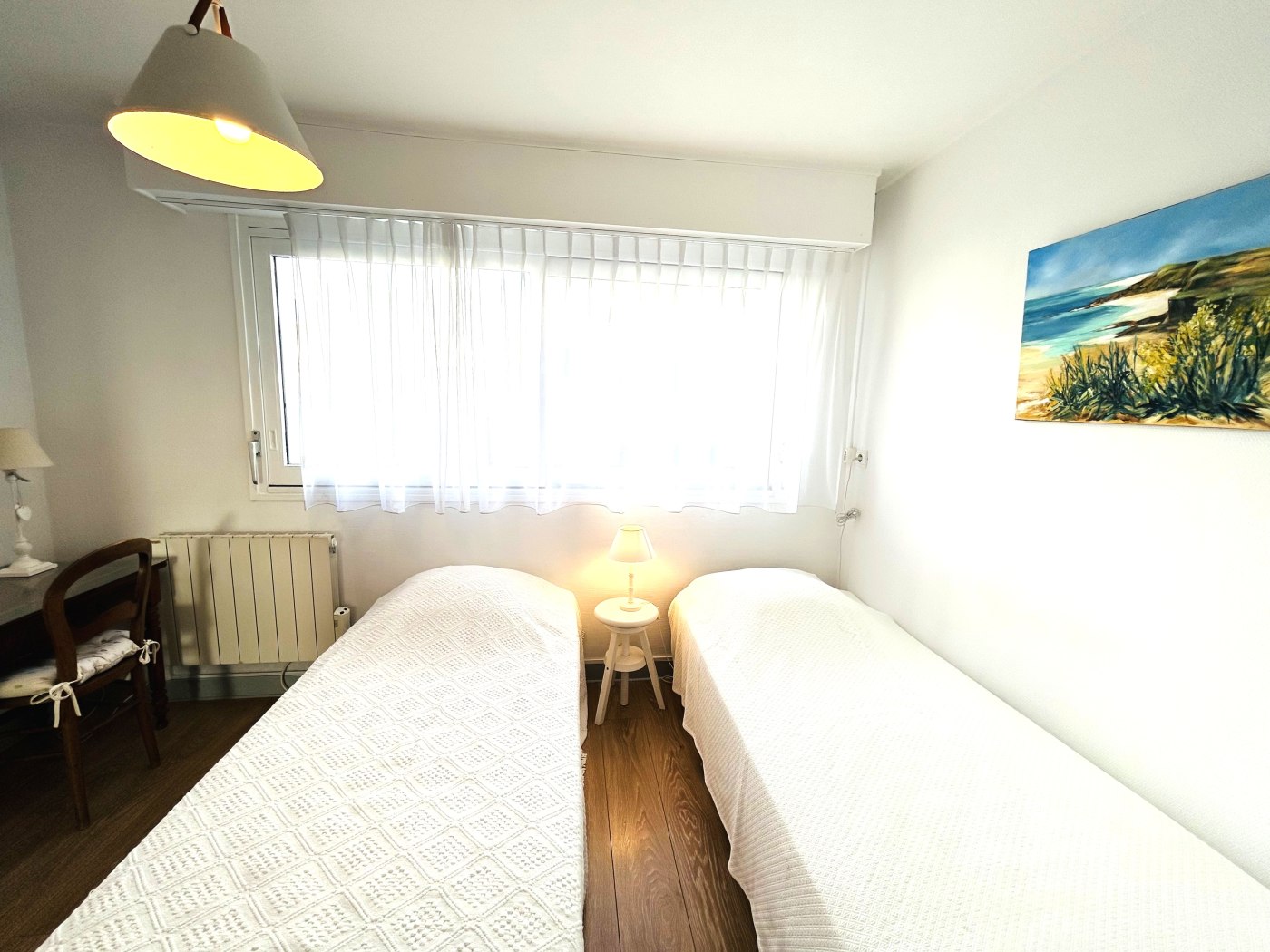 - Une chambre avec 2 lits simples 90 cm, une partie dressing et une vasque