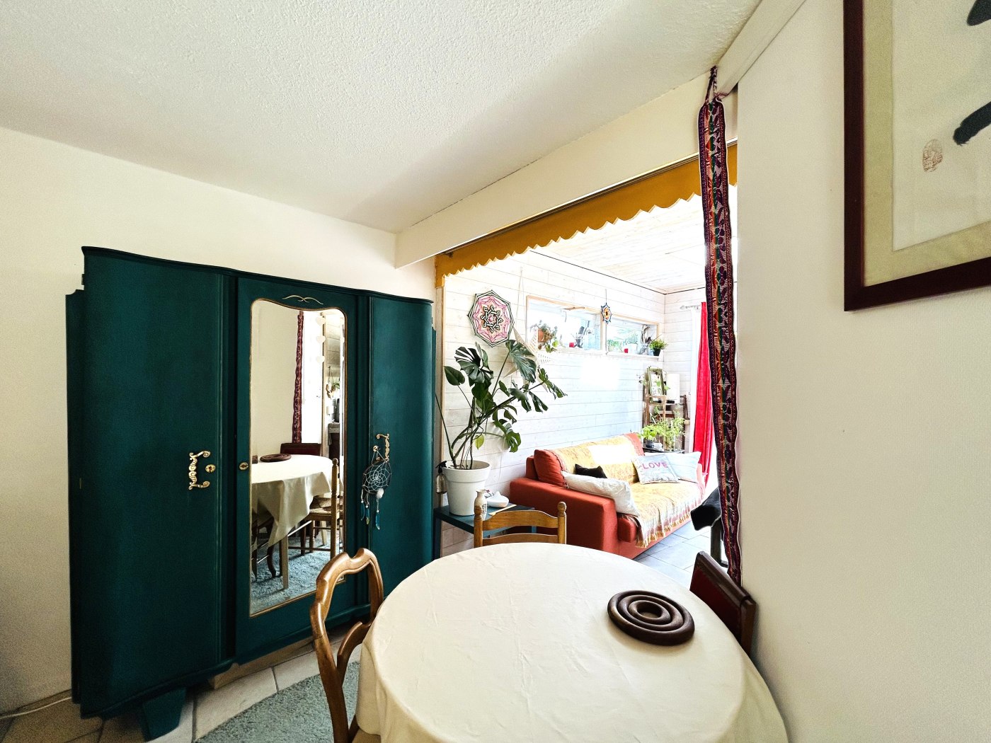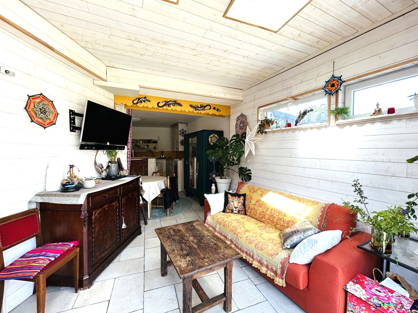 - Une pièce de vie avec coin séjour et salon avec canapé-lit