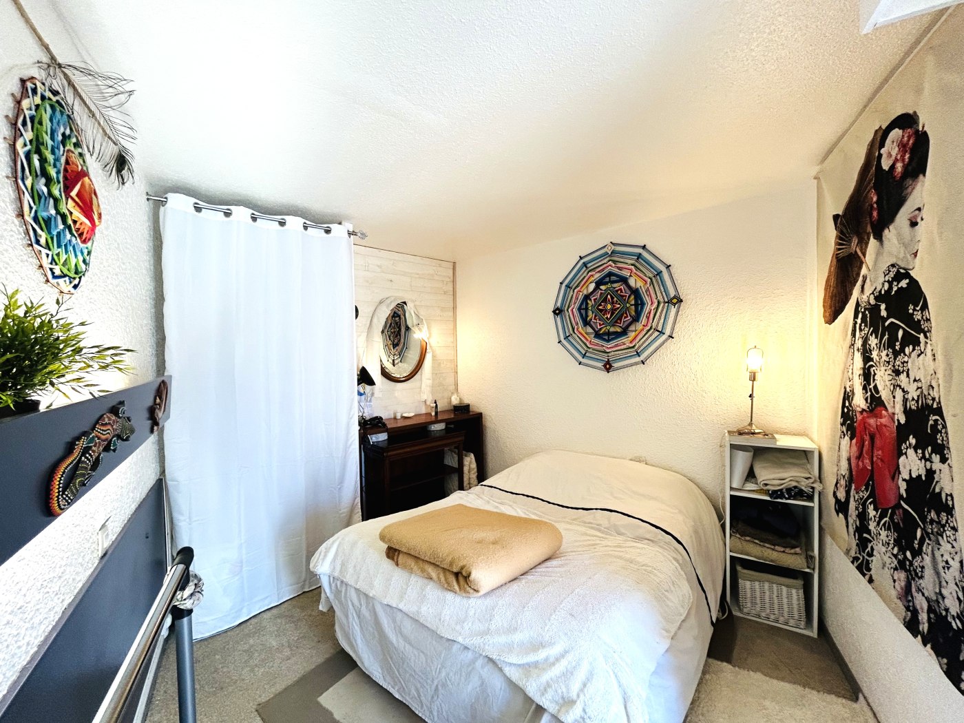 - Une chambre avec un lit double en 140 cm