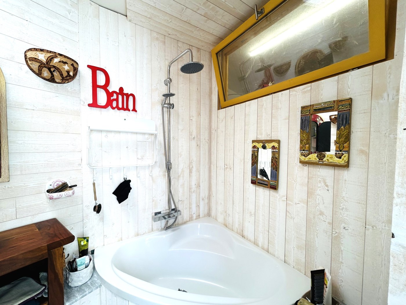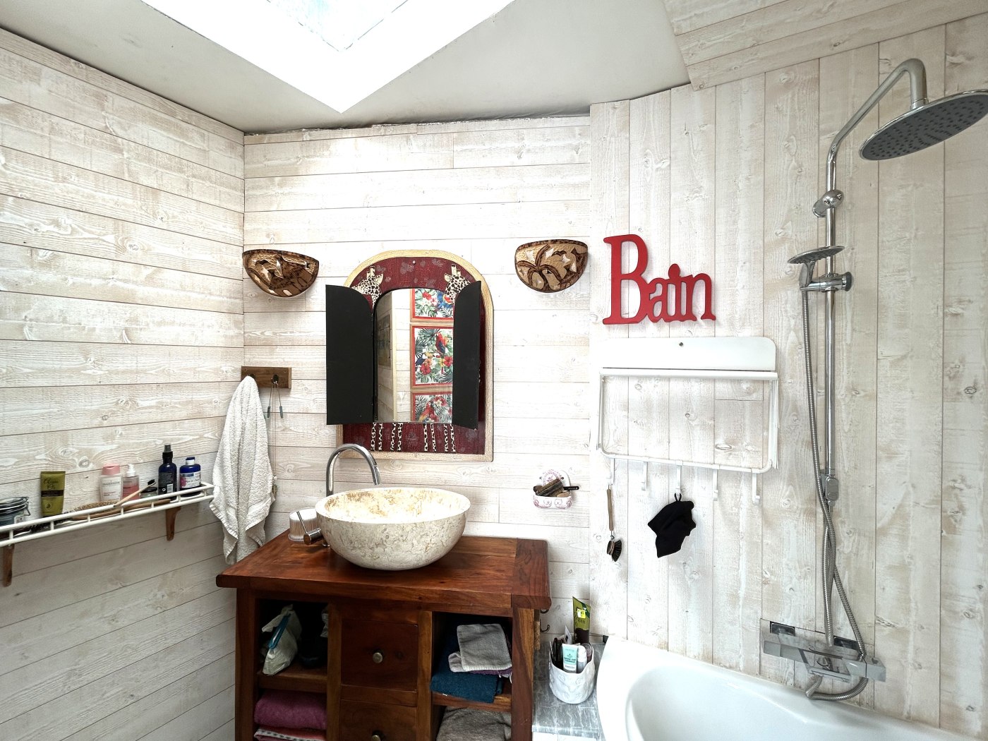 - Une salle de bain avec baignoire, vasque et WC.