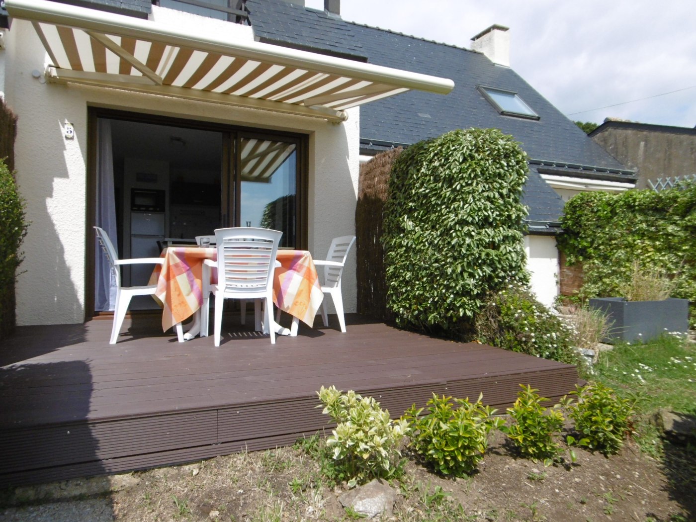 - Aperçu vue mer, terrasse équipée d'un salon de jardin, et d'un store manuel