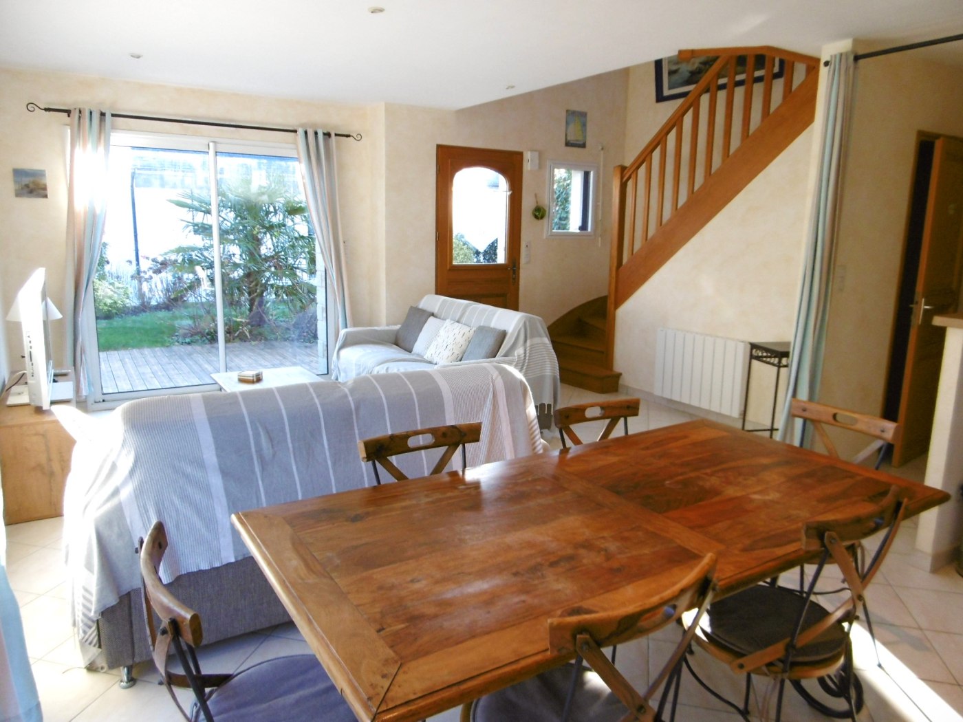 - Un jardin clos avec 2 terrasses, un salon de jardin, 2 chaises longues, un parasol, une plancha.