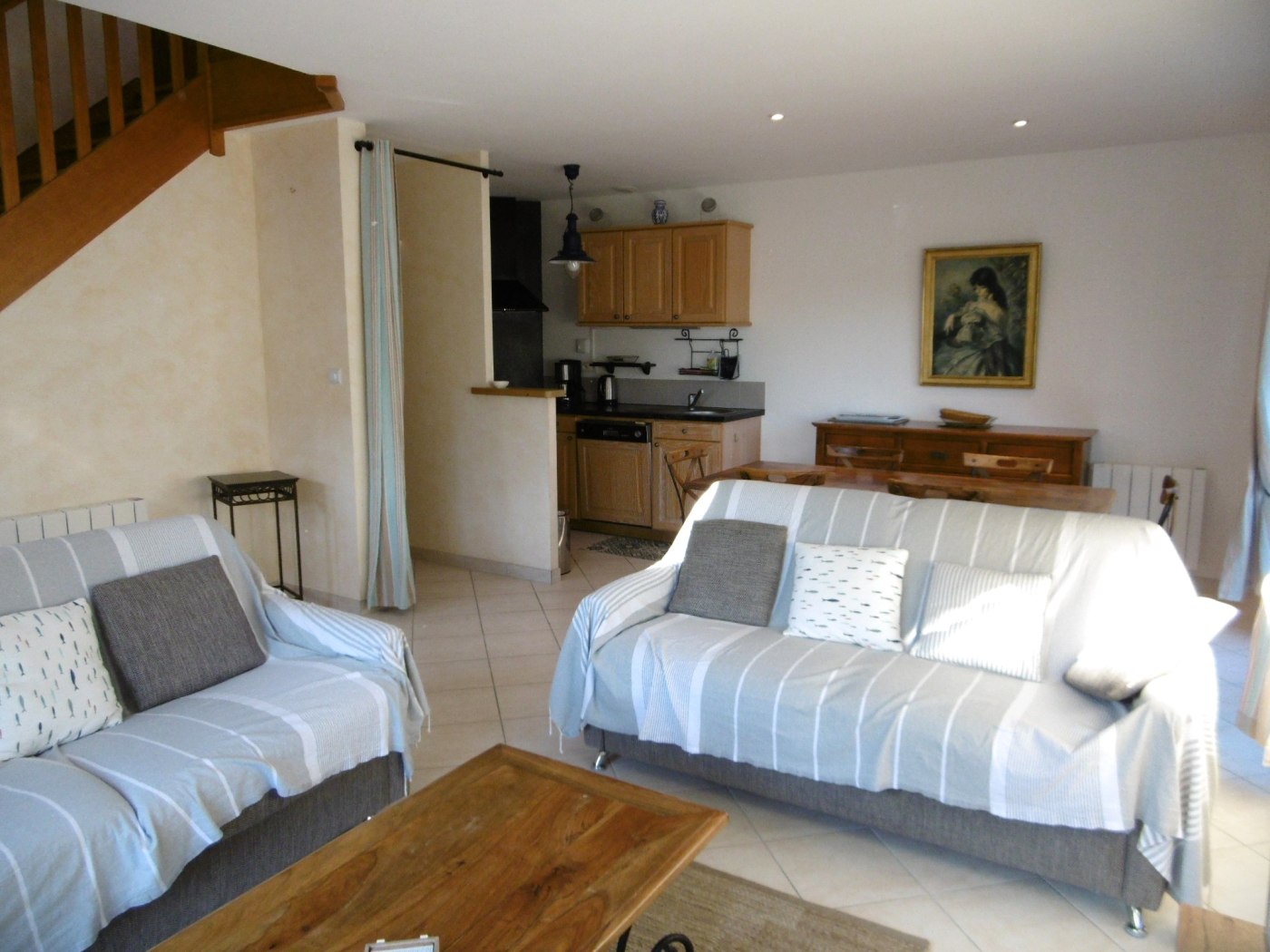 - Une cuisine aménagée et équipée ouverte sur le salon séjour donnant accès à 2 terrasses, une à l'est et une au sud.