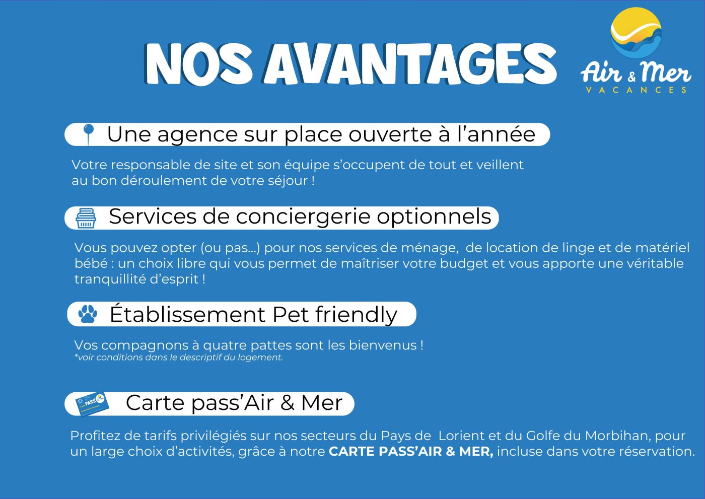 - Animaux acceptés avec un supplément de 30 € / animal / semaine y compris court séjour.